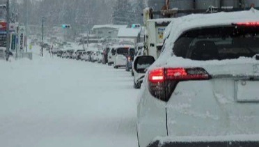 (大雪による大規模な立ち往生を防止するため、従来なら全面通行止めにしていた時間帯でもタイヤチェーン装着車に限り通行を許可するものです。)