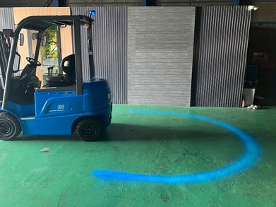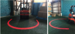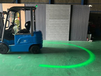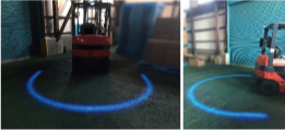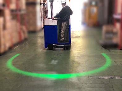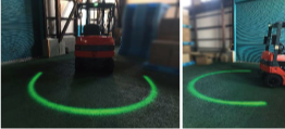 フォークリフトの接近をアーチ状の光でお知らせ