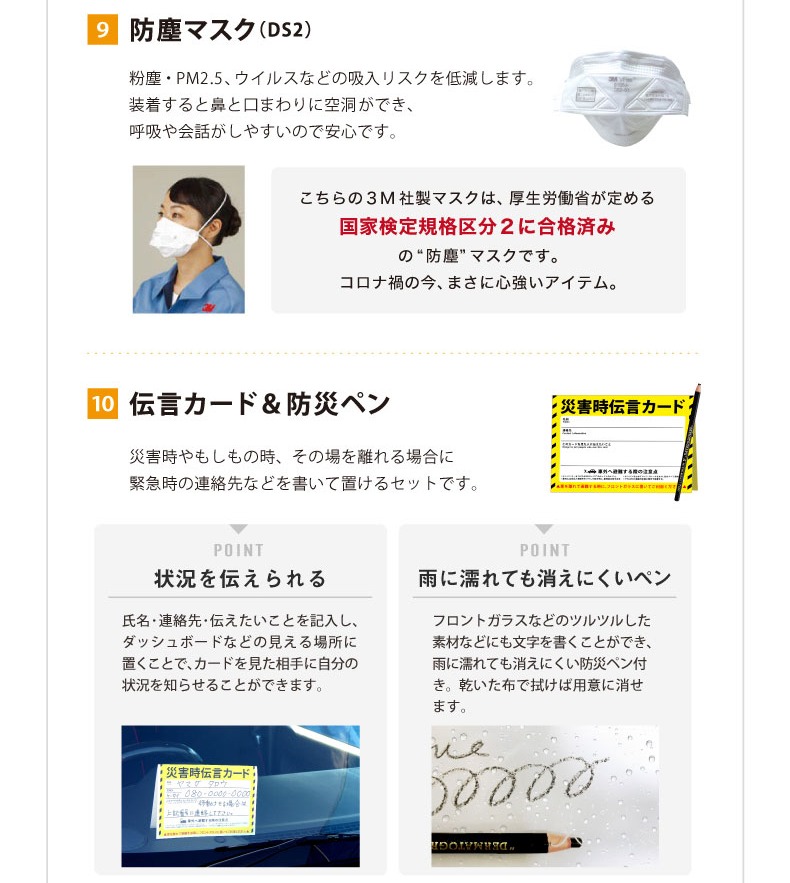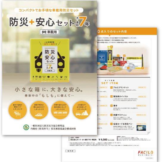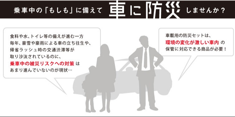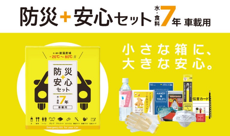 小さな箱に、大きな安心。 コンパクトでお手頃価格の車載用防災セット。