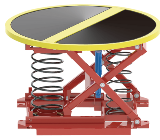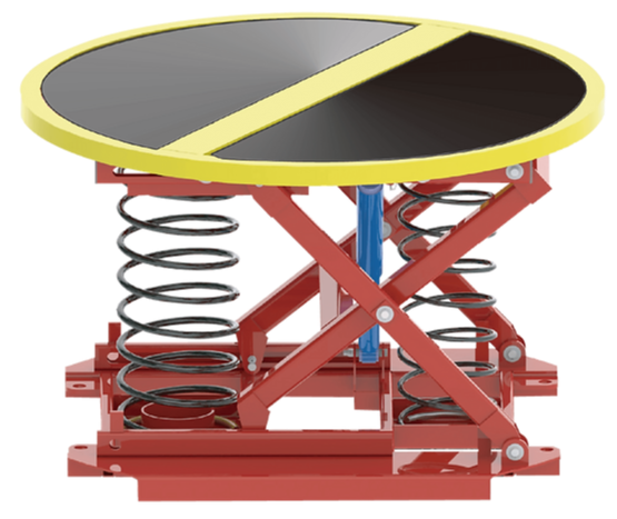 バネの力で自然に上下するため、操作は不要。荷物を載せれば台が下降し、降ろせば上昇します。
