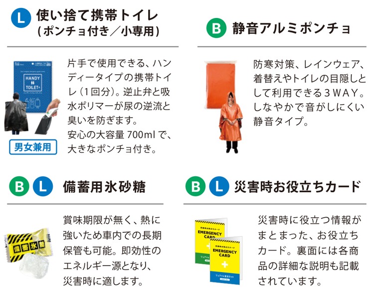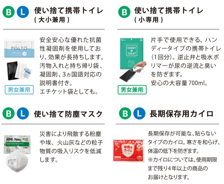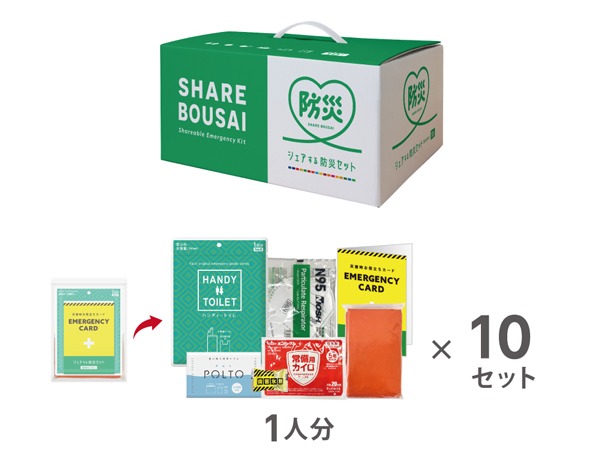 「シェアする防災セット」を備えることで、従業員のための備えはもちろんのこと、周囲の困っている方々へ防災用品を分け合うことができます。